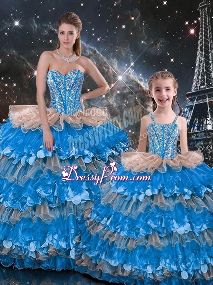 Excellent Multi-color Lace Up Vestidos de Quinceanera Beading and Ruffles Sleeveless Floor Length