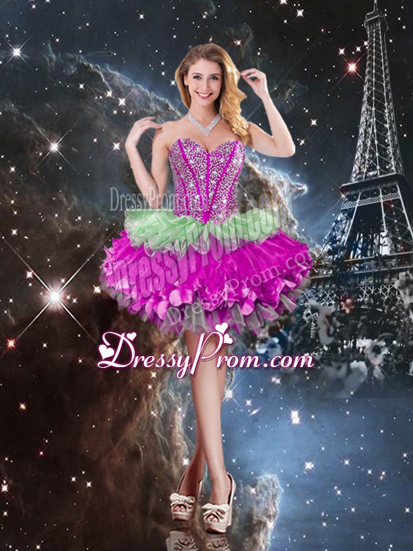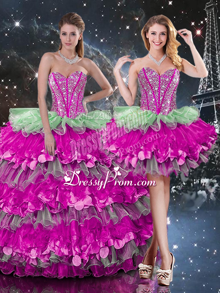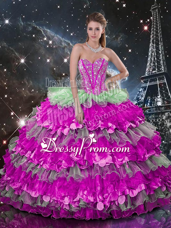 Neckline : SweetheartShown Color : Multi-colorSilhouette : Ball GownsSleeve Length : sleevelessHemline : floor lengthBack Detail : Lace upFabric : OrganzaEmbellishment : Beading,Ruffles,Ruffled LayersOccasion : Military Ball,Sweet 16Season : Spring,Summer,Fall,Winter