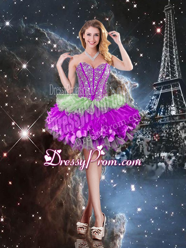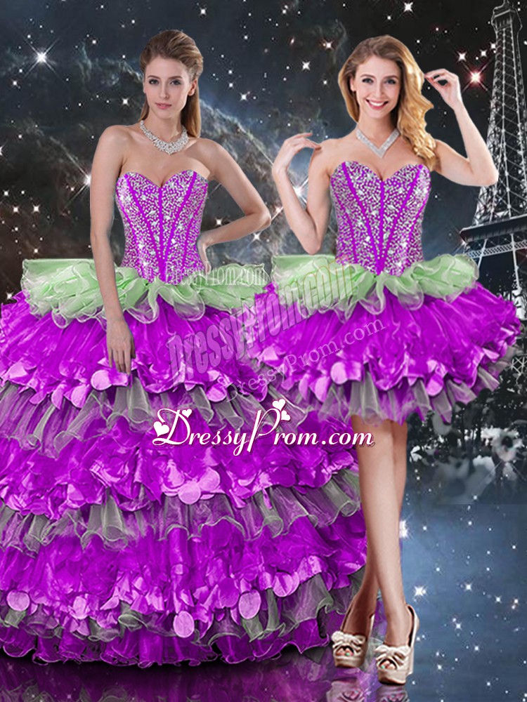 Sumptuous Multi-color Lace Up 15 Quinceanera Dress Beading and Ruffles and Ruffled Layers Sleeveless Floor Length