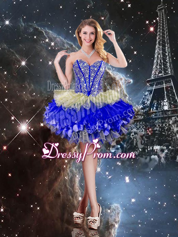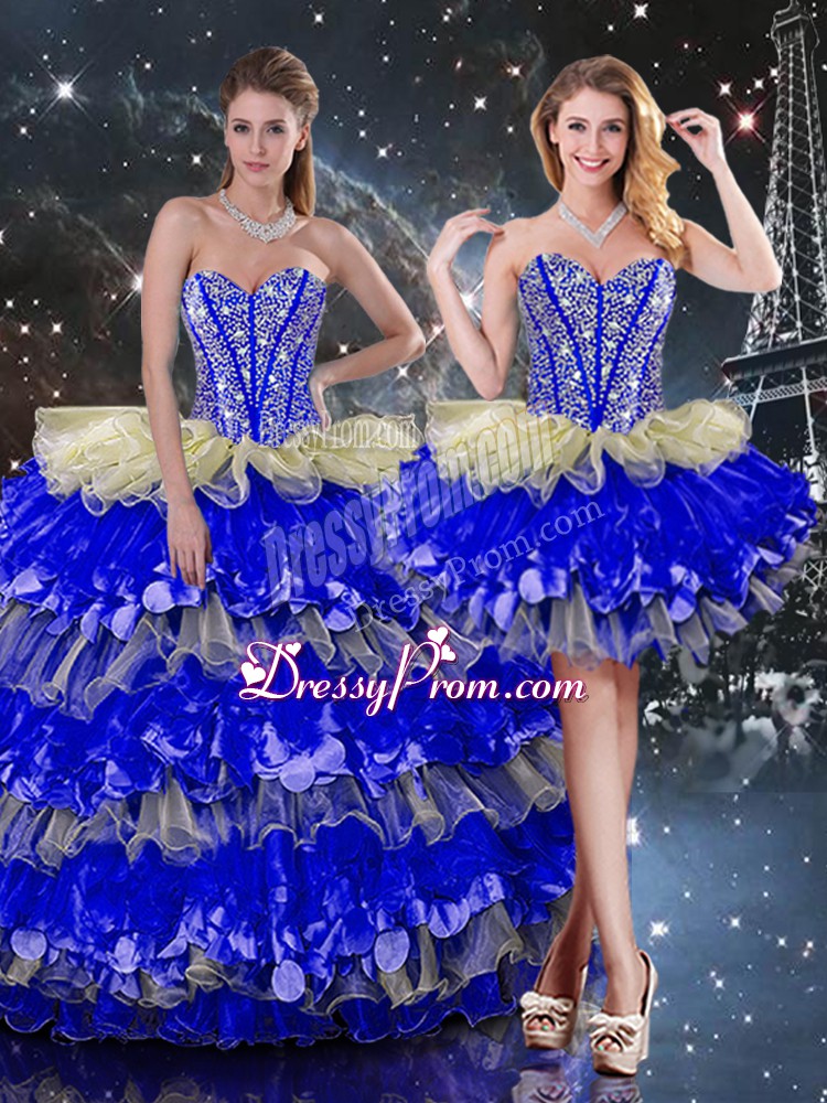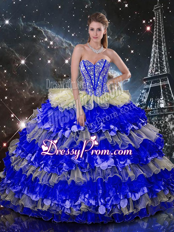 Glittering Multi-color Lace Up Sweet 16 Quinceanera Dress Beading and Ruffles and Ruffled Layers Sleeveless Floor Length