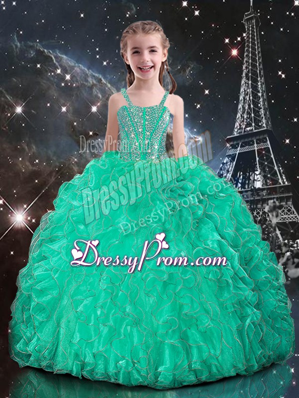 Neckline : SweetheartShown Color : TurquoiseSilhouette : Ball GownsSleeve Length : sleevelessHemline : floor lengthBack Detail : Lace upFabric : OrganzaEmbellishment : Beading,RufflesOccasion : Sweet 16,QuinceaneraSeason : Spring,Summer,Fall,Winter