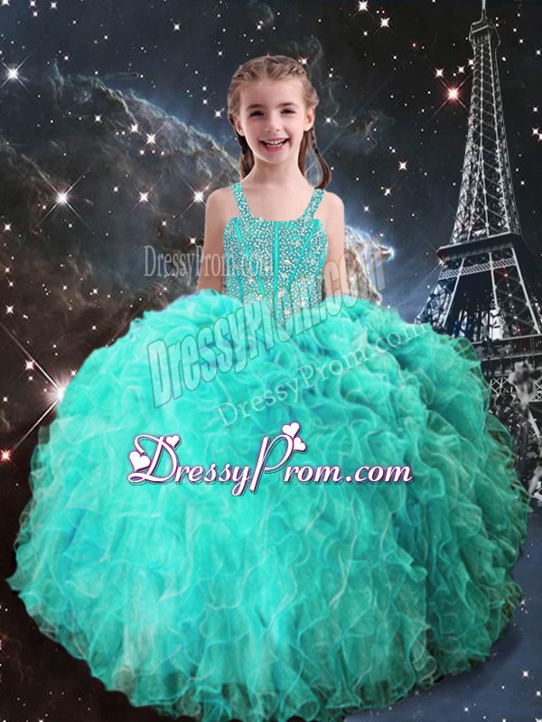 Neckline : SweetheartShown Color : TurquoiseSilhouette : Ball GownsSleeve Length : sleevelessHemline : floor lengthBack Detail : Lace upFabric : OrganzaEmbellishment : Beading,RufflesOccasion : Military Ball,Sweet 16,QuinceaneraSeason : Spring,Summer,Fall,Winter