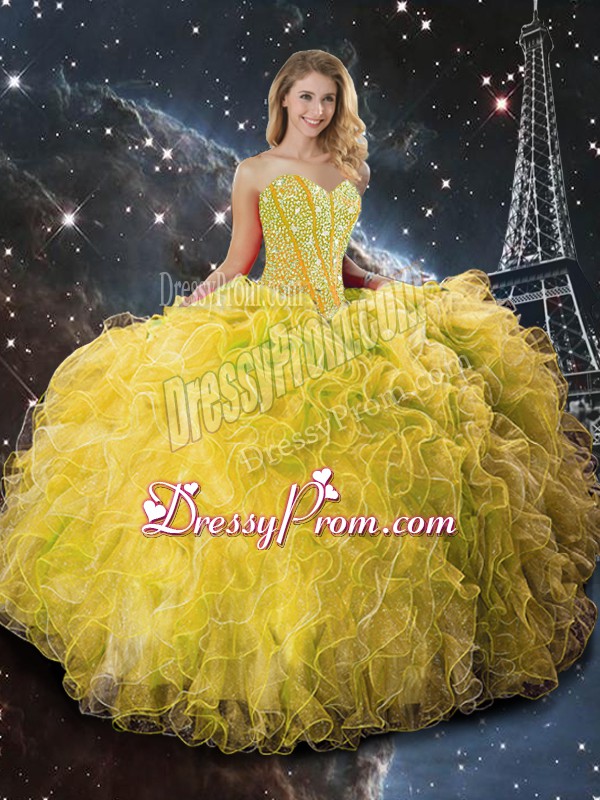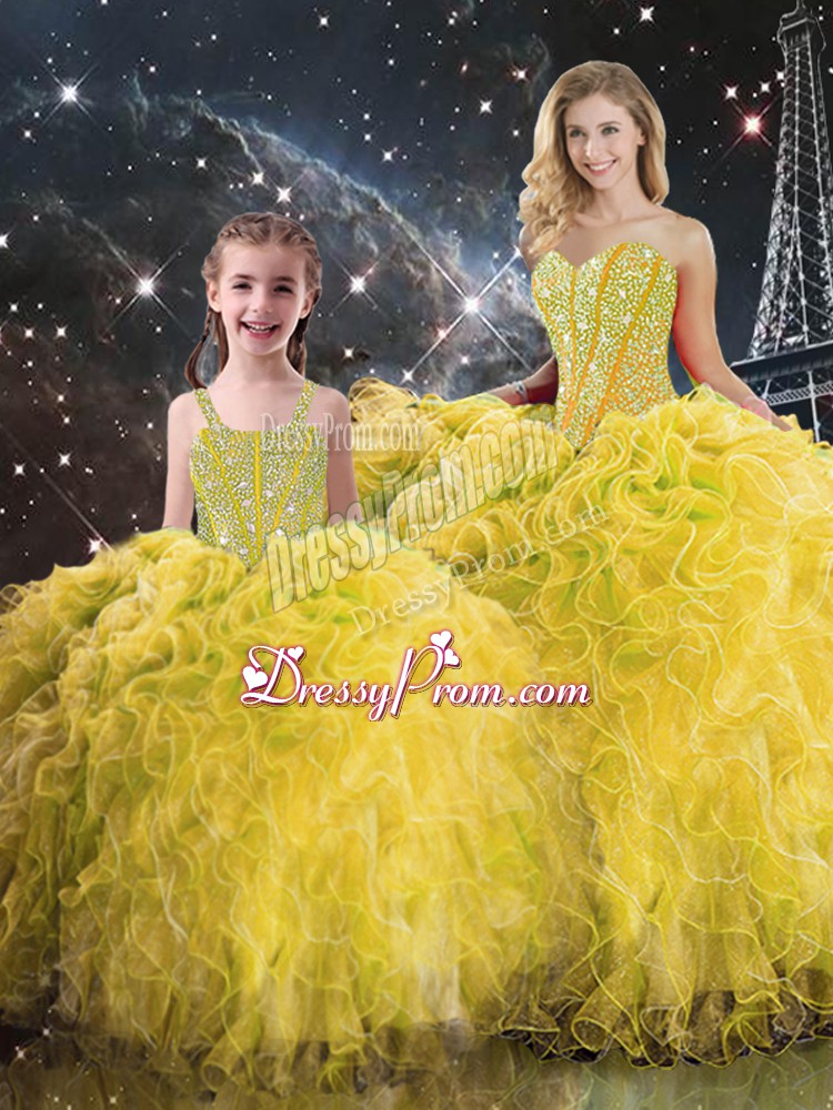 Fine Floor Length Ball Gowns Sleeveless Yellow Quinceanera Dresses Lace Up