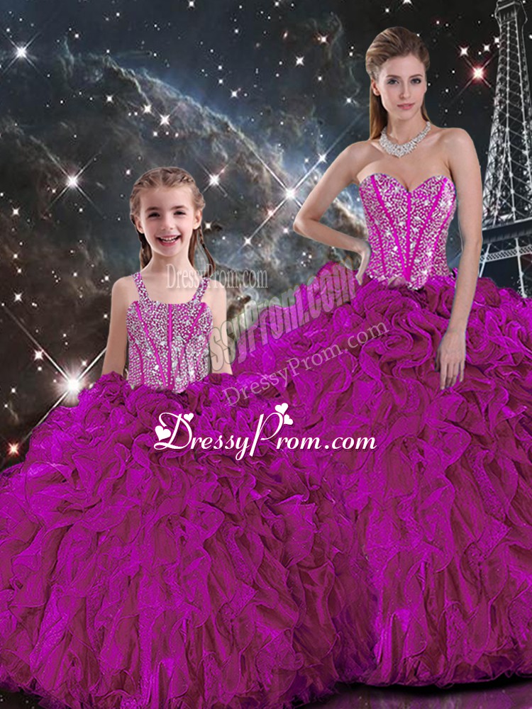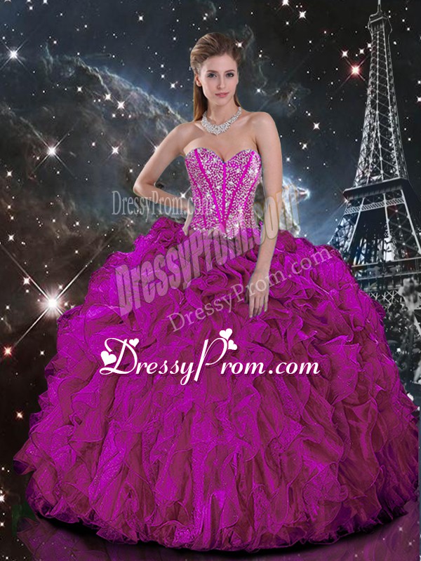 Fuchsia Sweetheart Lace Up Beading and Ruffles Quinceanera Gowns Sleeveless