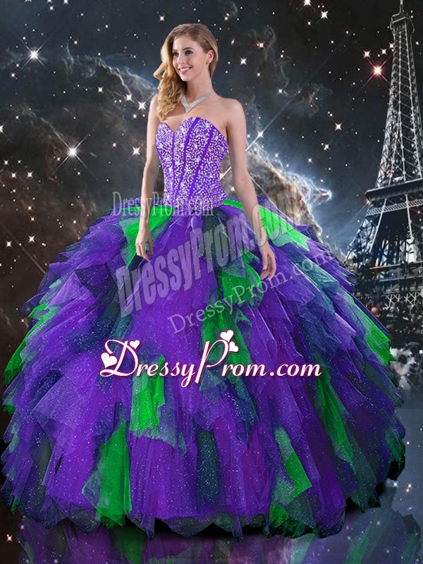 Trendy Sweetheart Sleeveless Lace Up 15th Birthday Dress Multi-color Organza