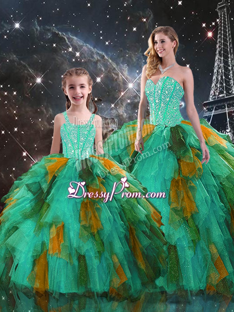 Adorable Sweetheart Sleeveless Organza Sweet 16 Dress Beading and Ruffles Lace Up