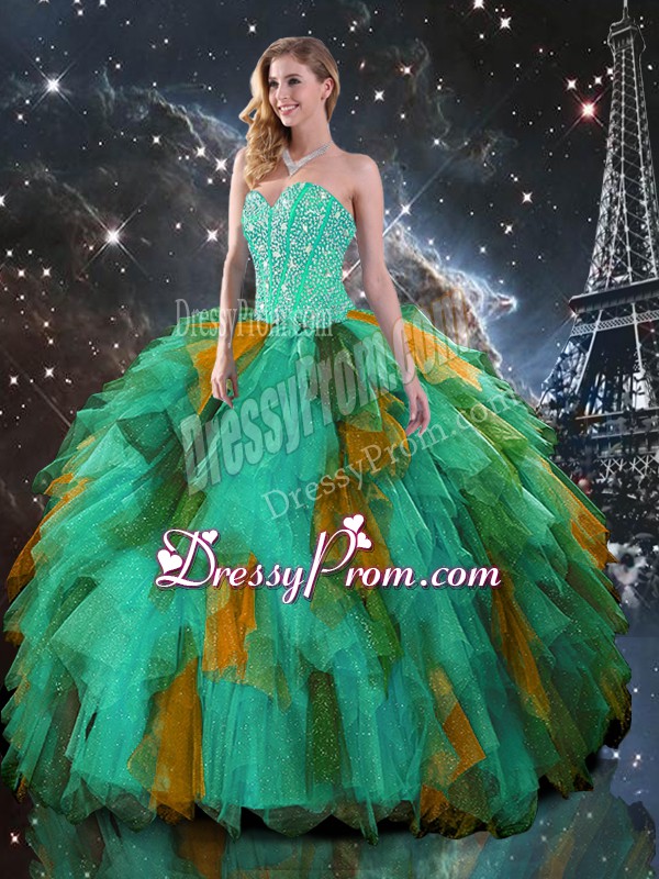 Neckline : SweetheartShown Color : Multi-colorSilhouette : Three PiecesSleeve Length : sleevelessHemline : floor lengthBack Detail : Lace upFabric : TulleEmbellishment : RufflesOccasion : Military Ball,Sweet 16,QuinceaneraSeason : Spring,Summer,Fall,Winter