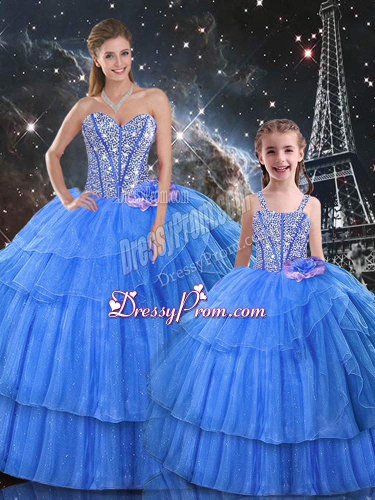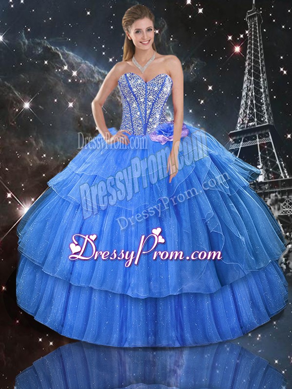 Neckline : SweetheartShown Color : Baby BlueSilhouette : Ball GownsSleeve Length : sleevelessHemline : floor lengthBack Detail : Lace upFabric : Organza,TulleEmbellishment : Ruffled LayersOccasion : Military Ball,Sweet 16,QuinceaneraSeason : Spring,Summer,Fall,Winter
