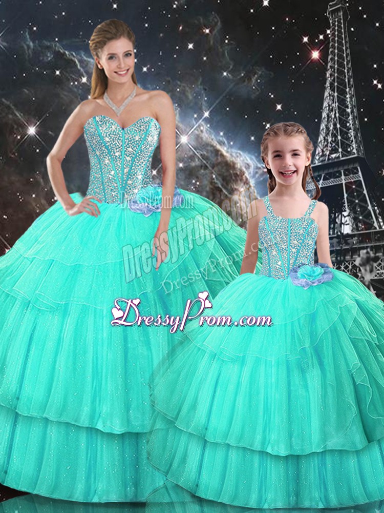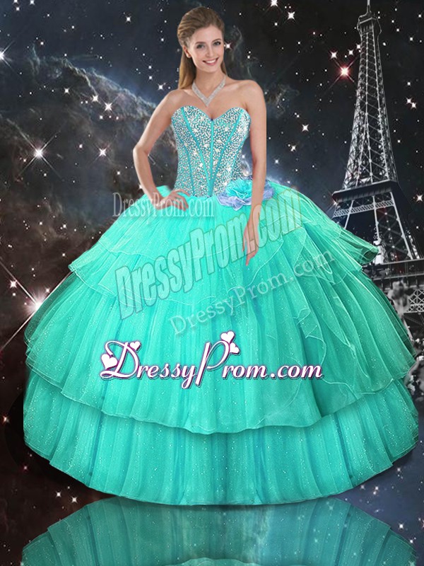 Neckline : SweetheartShown Color : TurquoiseSilhouette : Ball GownsSleeve Length : sleevelessHemline : floor lengthBack Detail : Lace upFabric : OrganzaEmbellishment : Ruffled LayersOccasion : Military Ball,Sweet 16,QuinceaneraSeason : Spring,Summer,Fall,Winter