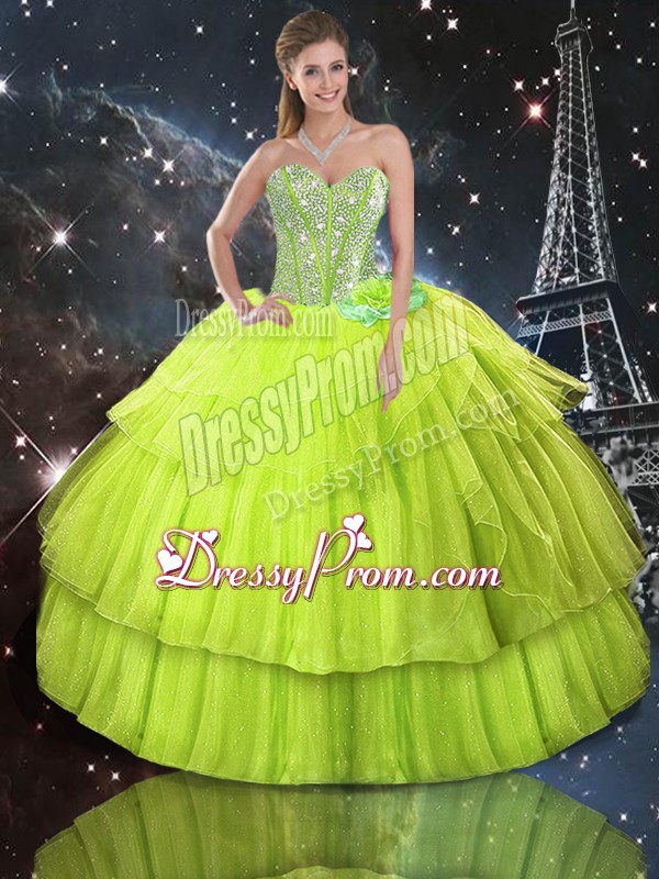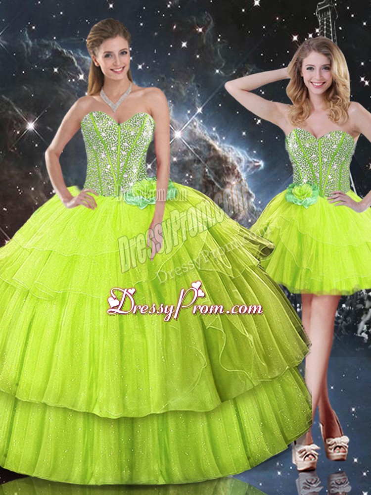 Ball Gowns Quinceanera Dress Yellow Green Sweetheart Organza Sleeveless Floor Length Lace Up