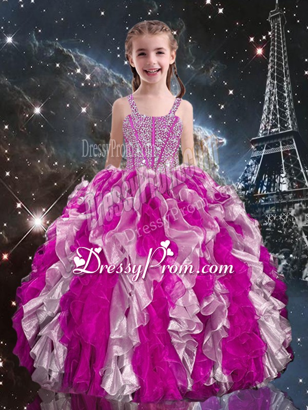 Multi-color Sleeveless Beading and Ruffles Floor Length Quince Ball Gowns