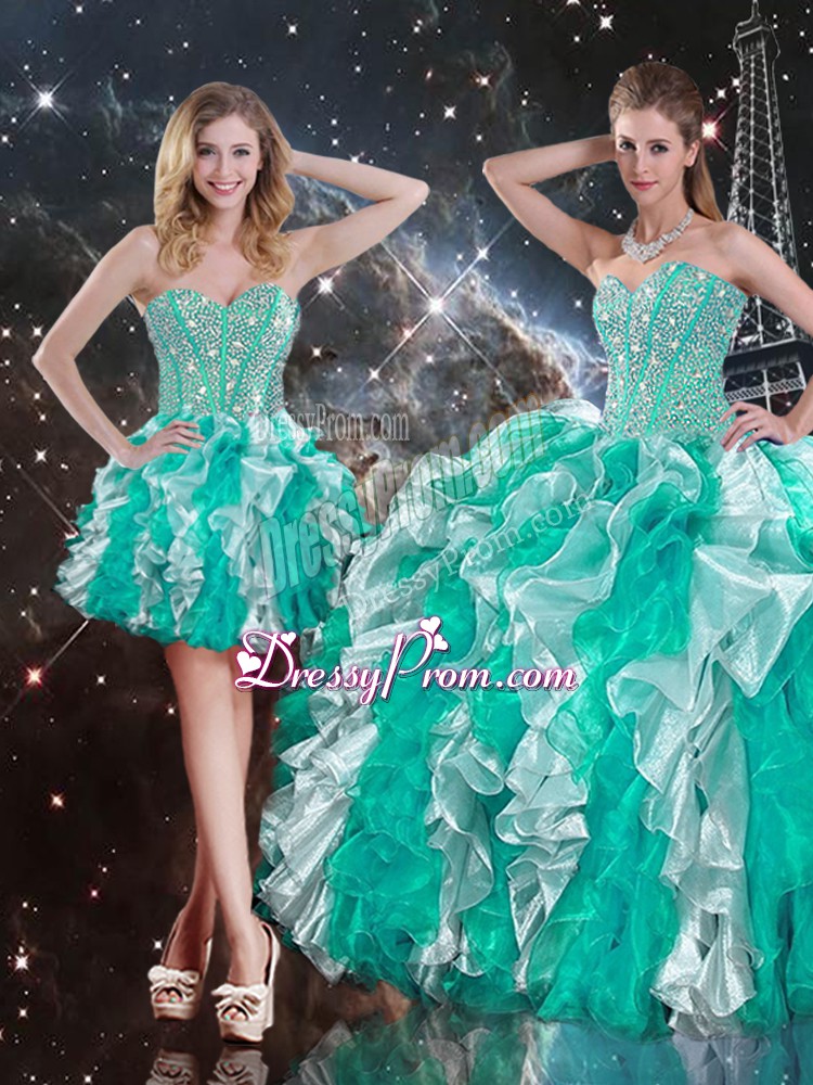 Trendy Organza Sweetheart Sleeveless Lace Up Beading and Ruffles Sweet 16 Dress in Multi-color