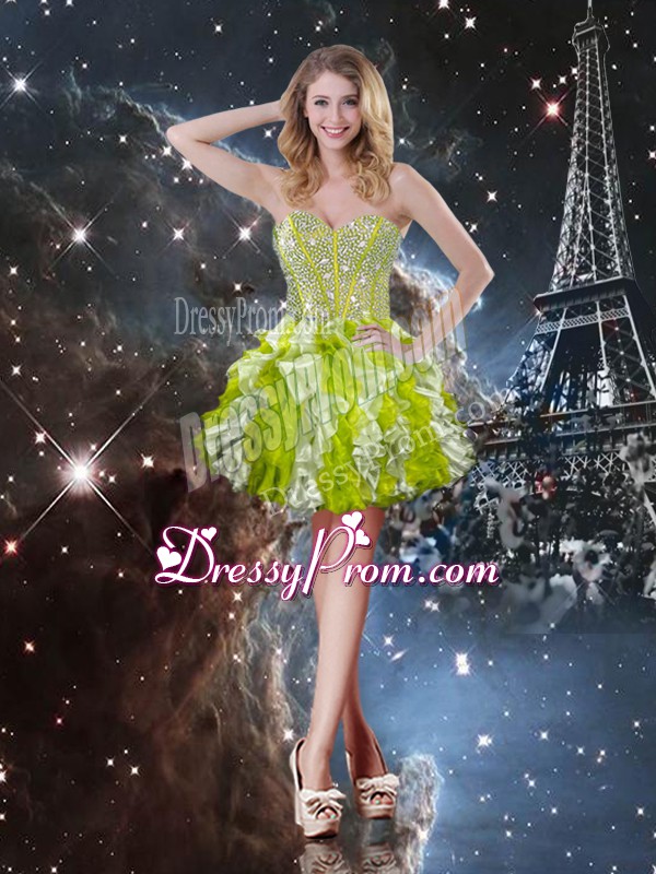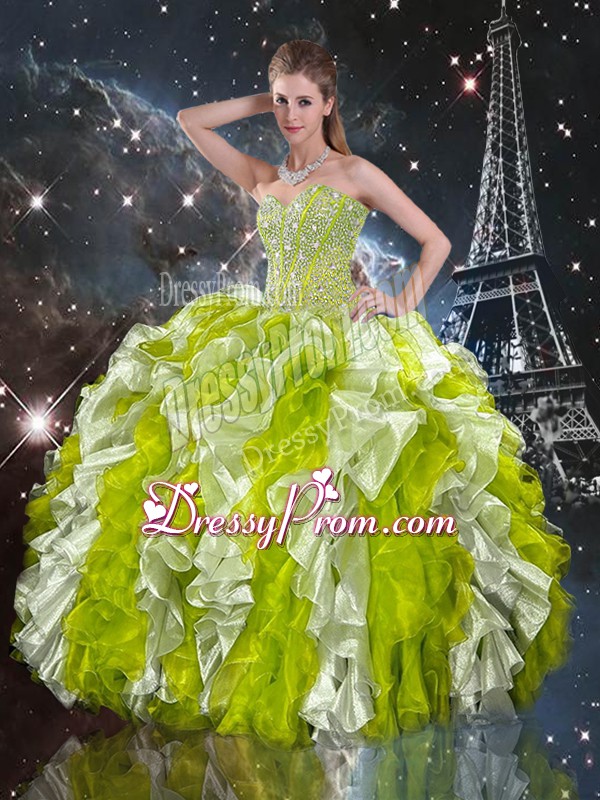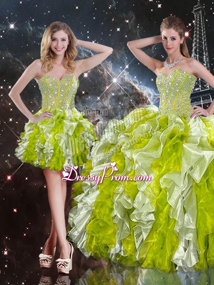 Amazing Multi-color Lace Up Sweetheart Beading and Ruffles Quinceanera Gown Organza Sleeveless