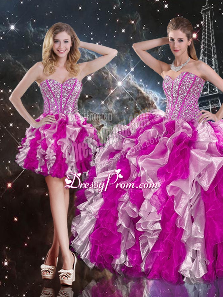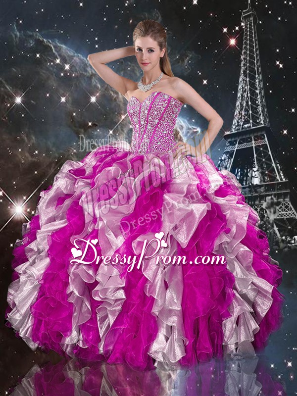 Simple Organza Sweetheart Sleeveless Lace Up Beading and Ruffles Sweet 16 Dresses in Multi-color