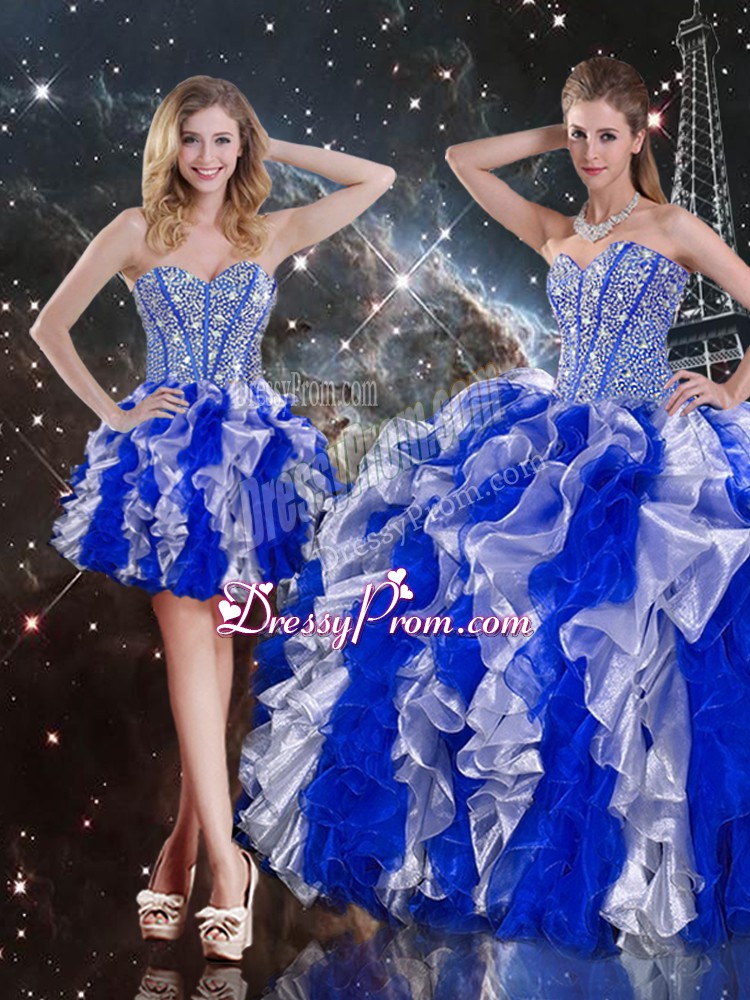 Sweetheart Sleeveless 15 Quinceanera Dress Floor Length Ruffles Multi-color Organza