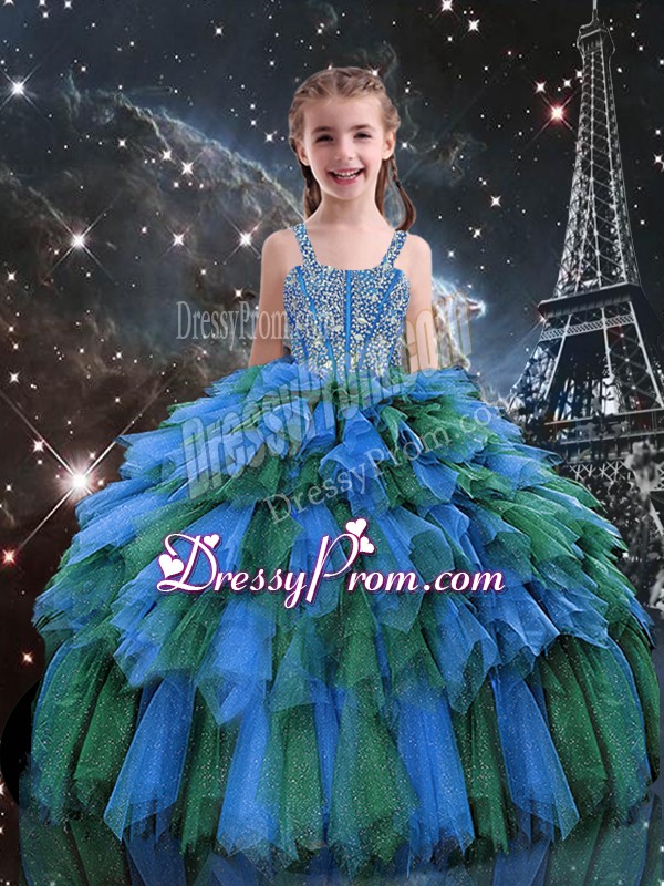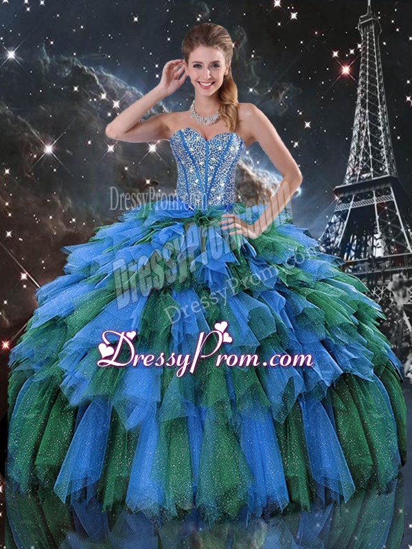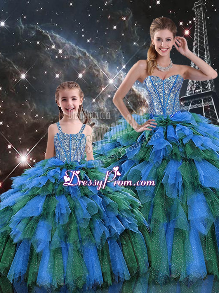 Sweet Multi-color Lace Up Quinceanera Dress Beading and Ruffles and Ruffled Layers Sleeveless Floor Length