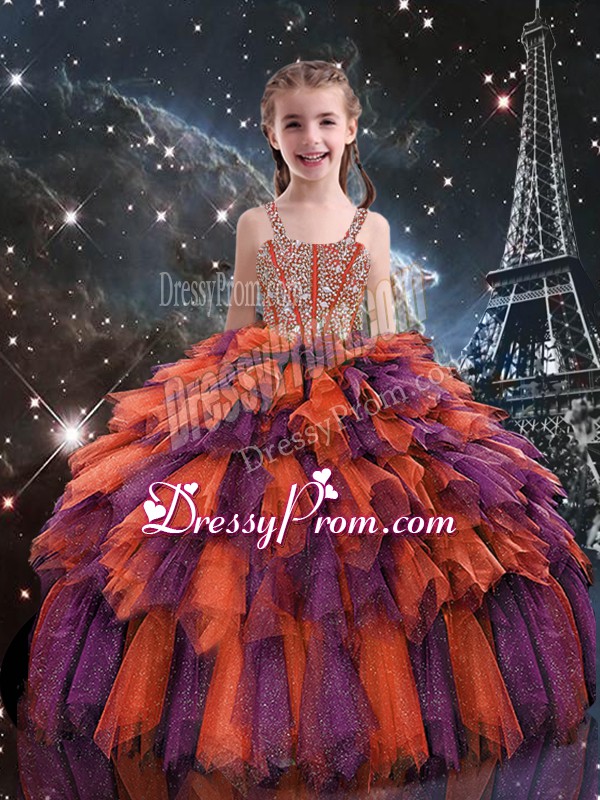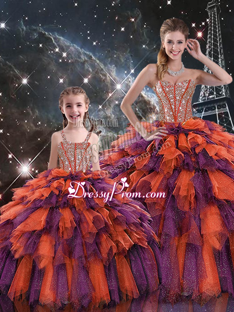 Hot Sale Multi-color Organza Lace Up Vestidos de Quinceanera Sleeveless Floor Length Beading and Ruffles and Ruffled Layers