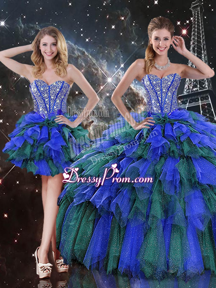 High Quality Floor Length Multi-color Quinceanera Gown Organza Sleeveless Beading and Ruffles and Ruffled Layers