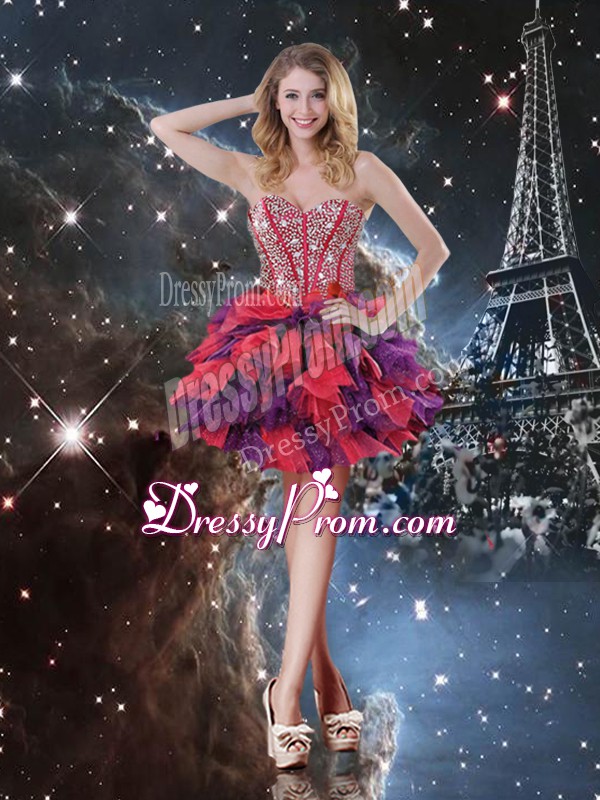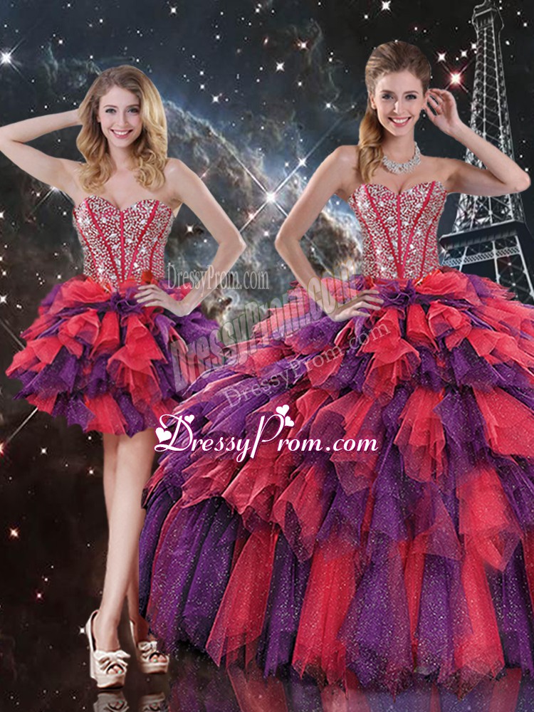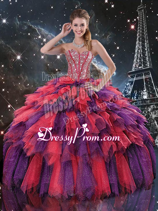 Admirable Beading and Ruffles and Ruffled Layers Sweet 16 Quinceanera Dress Multi-color Lace Up Sleeveless Floor Length