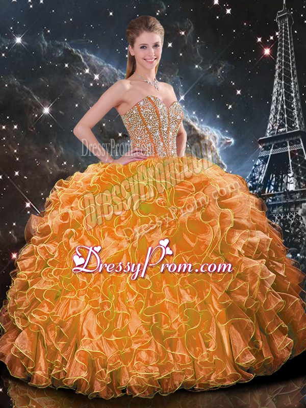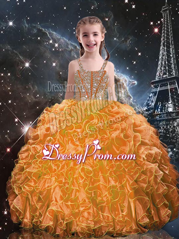 Orange Sleeveless Organza Lace Up Quinceanera Gowns for Military Ball and Sweet 16 and Quinceanera