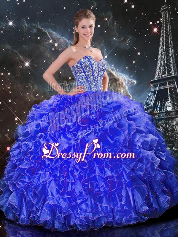 Admirable Blue Sleeveless Floor Length Beading and Ruffles Lace Up Sweet 16 Dress