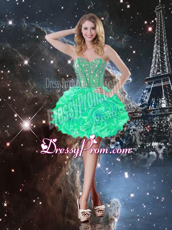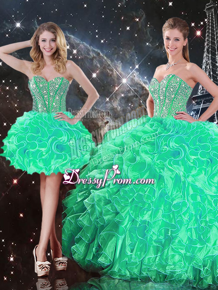 Neckline : SweetheartShown Color : TurquoiseSilhouette : Ball GownsSleeve Length : sleevelessHemline : floor lengthBack Detail : Lace upFabric : OrganzaEmbellishment : Beading,RufflesOccasion : Military Ball,Sweet 16,QuinceaneraSeason : Spring,Summer,Fall,Winter
