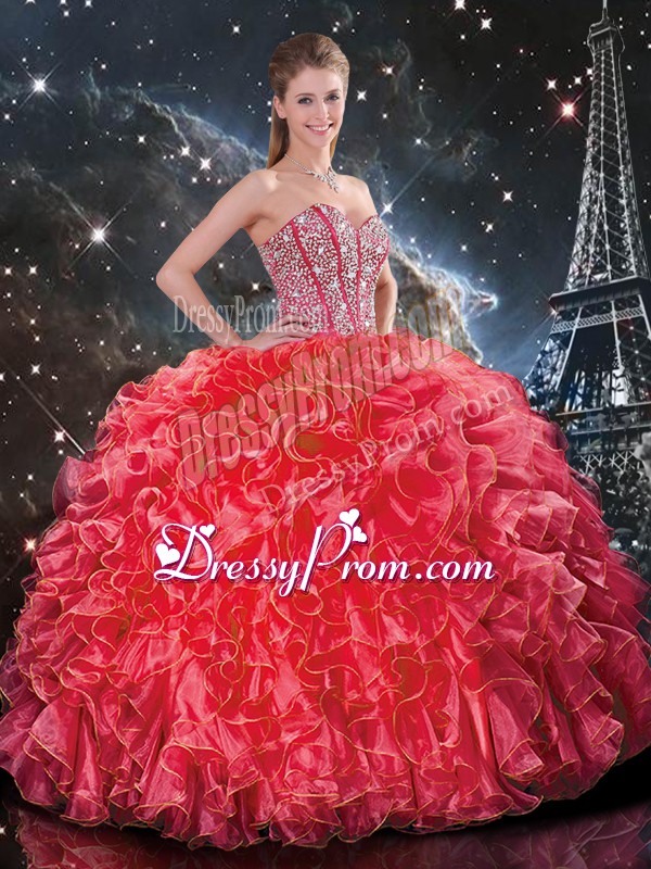Perfect Sleeveless Beading and Ruffles Lace Up Quince Ball Gowns