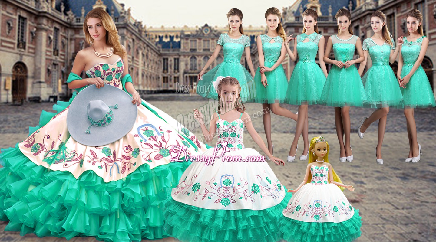 Neckline : SweetheartShown Color : TurquoiseSilhouette : Ball GownsSleeve Length : sleevelessHemline : floor lengthBack Detail : Lace upFabric : OrganzaEmbellishment : Embroidery,Ruffled LayersOccasion : Military Ball,Sweet 16,QuinceaneraSeason : Spring,Summer,Fall,Winter