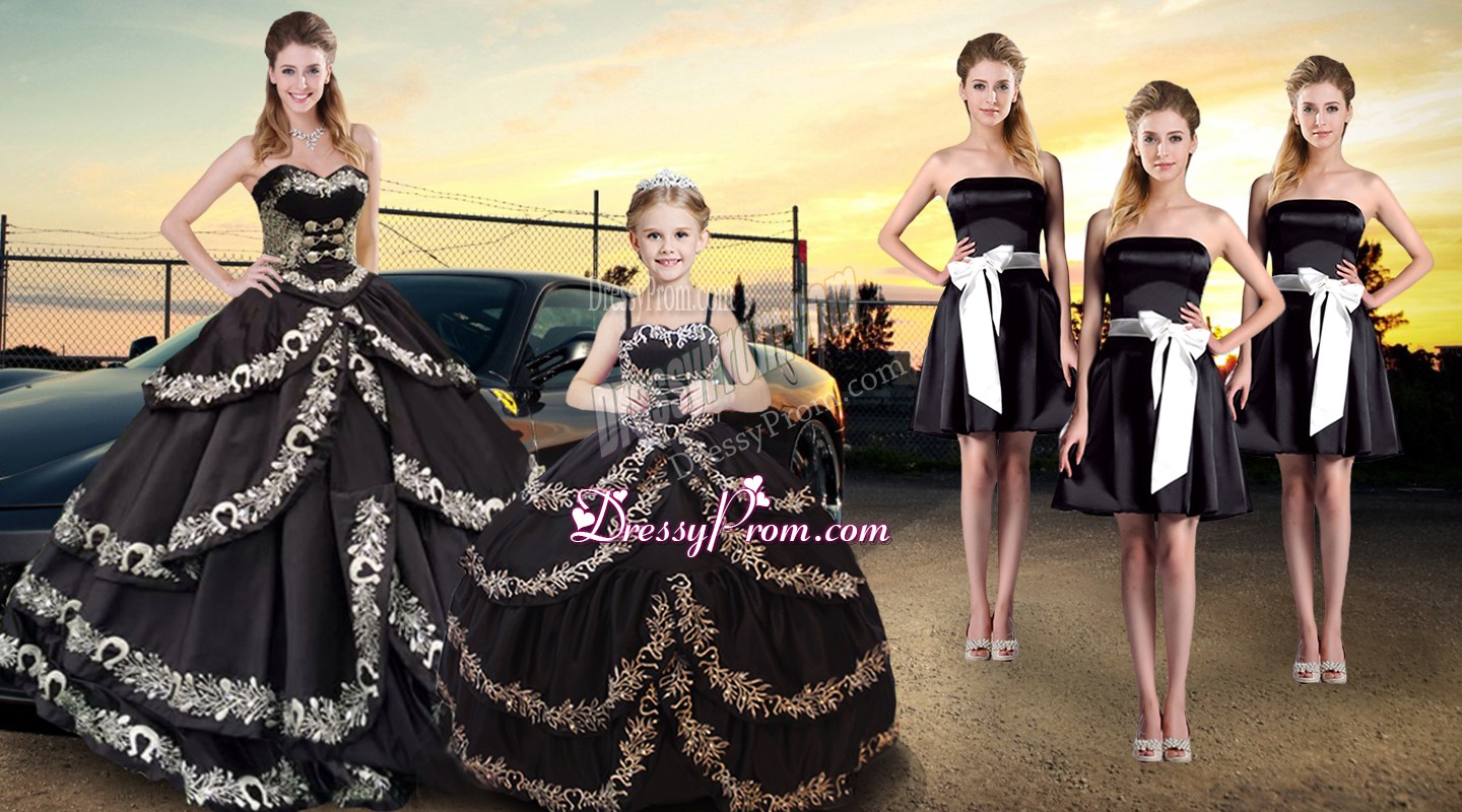 Neckline : SweetheartShown Color : BlackSilhouette : Ball GownsSleeve Length : sleevelessHemline : floor lengthBack Detail : Lace upFabric : TaffetaEmbellishment : Embroidery,Ruffled LayersOccasion : Military Ball,Sweet 16,QuinceaneraSeason : Spring,Summer,Fall,Winter