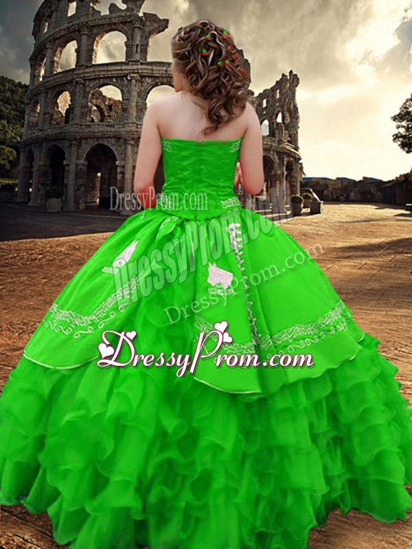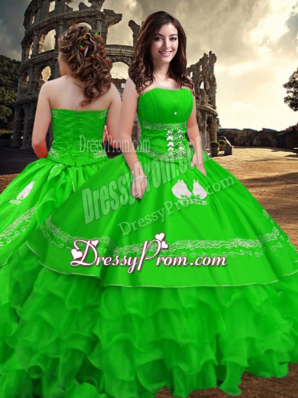 Green Strapless Zipper Embroidery and Ruffled Layers Quinceanera Dress Sleeveless
