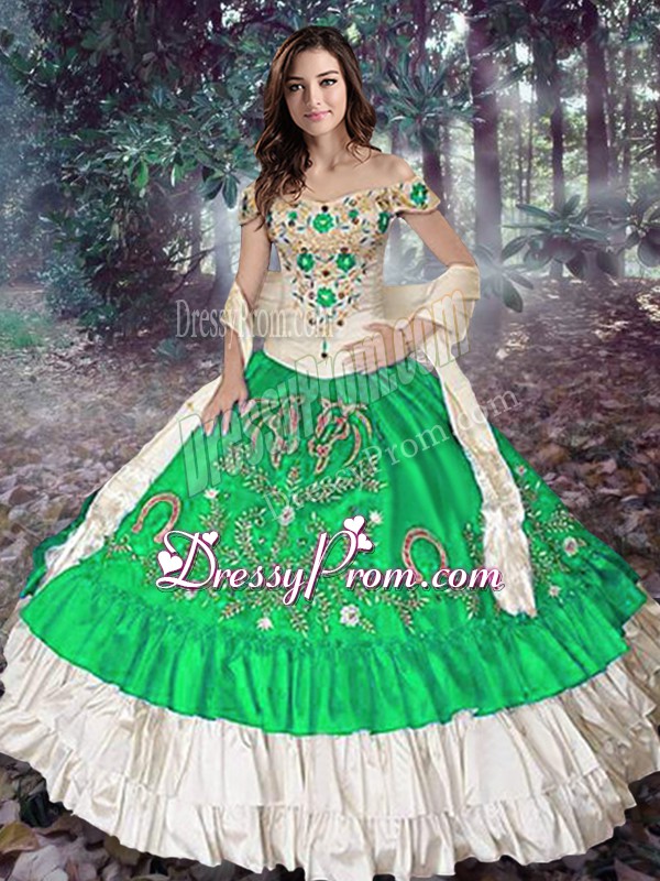Green Ball Gowns Embroidery and Ruffled Layers Sweet 16 Quinceanera Dress Lace Up Taffeta Sleeveless Floor Length