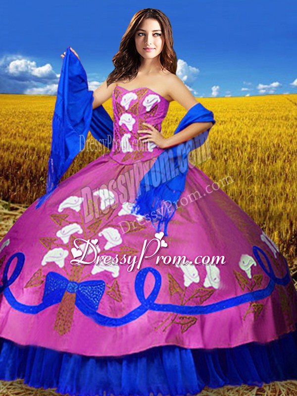 Floor Length Multi-color 15 Quinceanera Dress Taffeta Sleeveless Embroidery