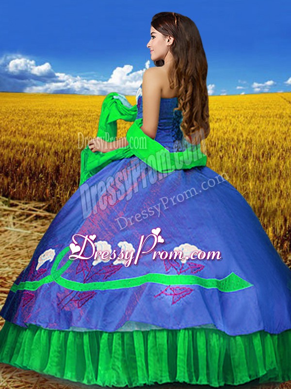Taffeta Sleeveless Floor Length Ball Gown Prom Dress and Embroidery