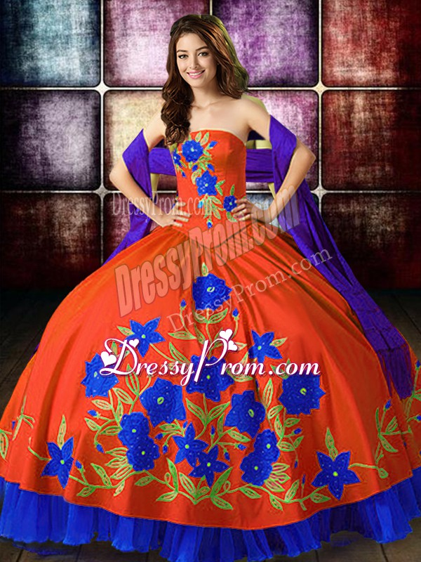 Elegant Multi-color Lace Up Quinceanera Gowns Embroidery Sleeveless Floor Length