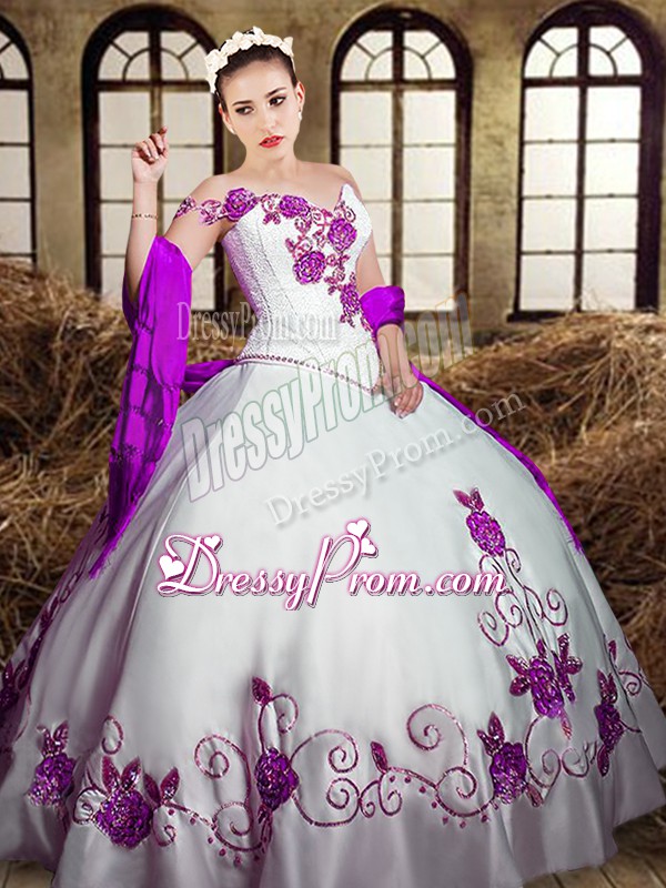 White Sweetheart Lace Up Embroidery Sweet 16 Quinceanera Dress Sleeveless