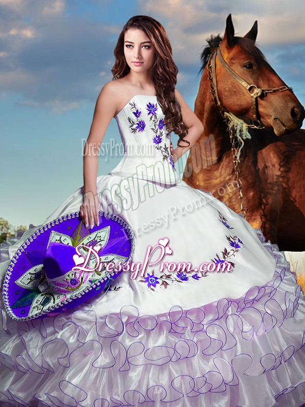 Great White Strapless Neckline Embroidery and Ruffled Layers 15 Quinceanera Dress Sleeveless Lace Up