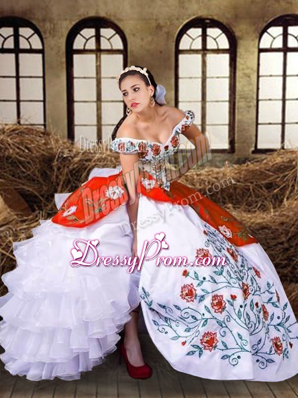 Smart Floor Length Multi-color Sweet 16 Quinceanera Dress Off The Shoulder Sleeveless Lace Up