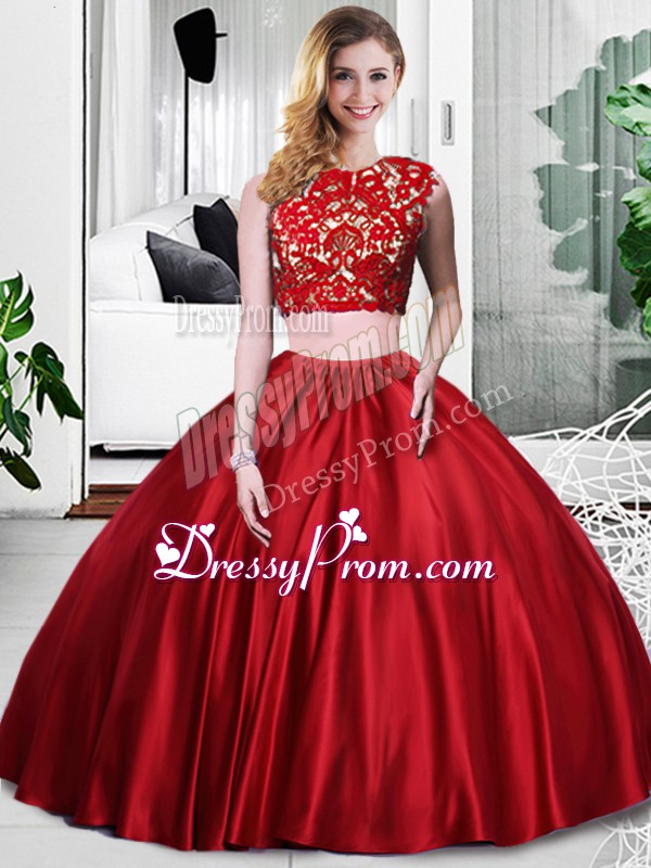 Neckline : ScoopShown Color : Wine RedSilhouette : Two PiecesSleeve Length : sleevelessHemline : floor lengthBack Detail : ZipperFabric : TaffetaEmbellishment : Lace,RuchingOccasion : Military Ball,Sweet 16,QuinceaneraSeason : Spring,Summer,Fall,Winter
