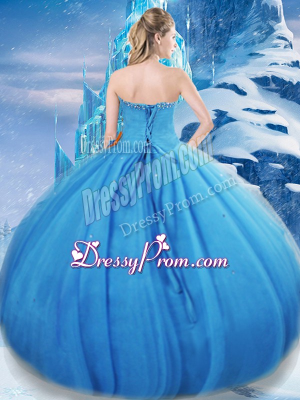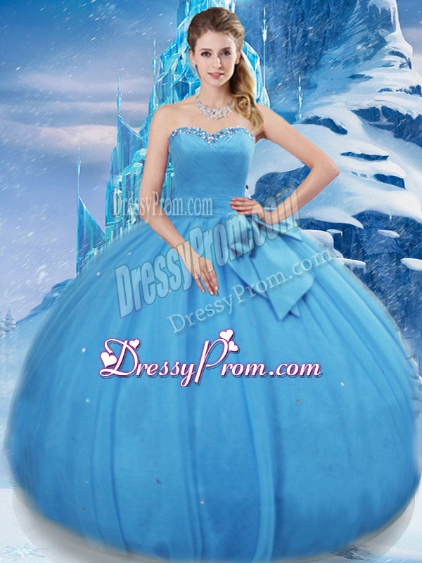 Baby Blue Ball Gowns Tulle Sweetheart Sleeveless Bowknot Floor Length Lace Up Sweet 16 Quinceanera Dress