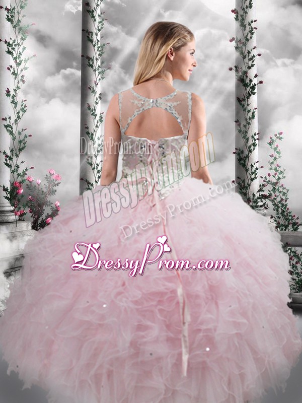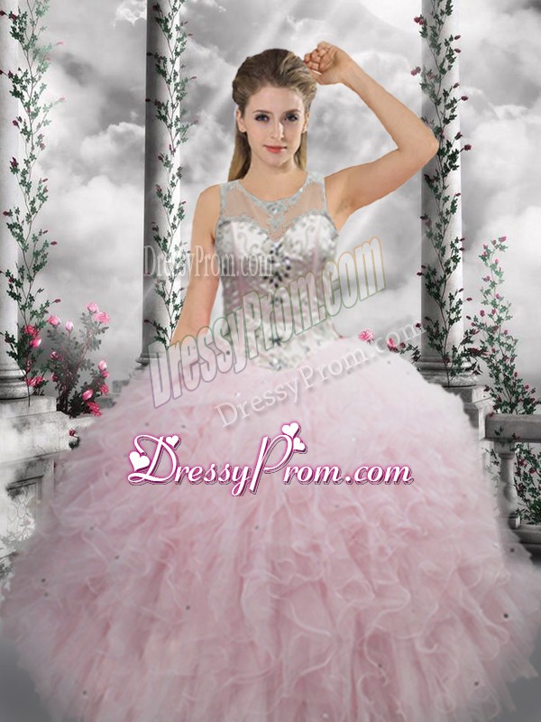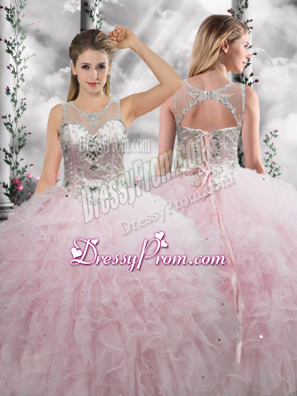 Baby Pink Scoop Lace Up Beading and Ruffles Quinceanera Dresses Sleeveless
