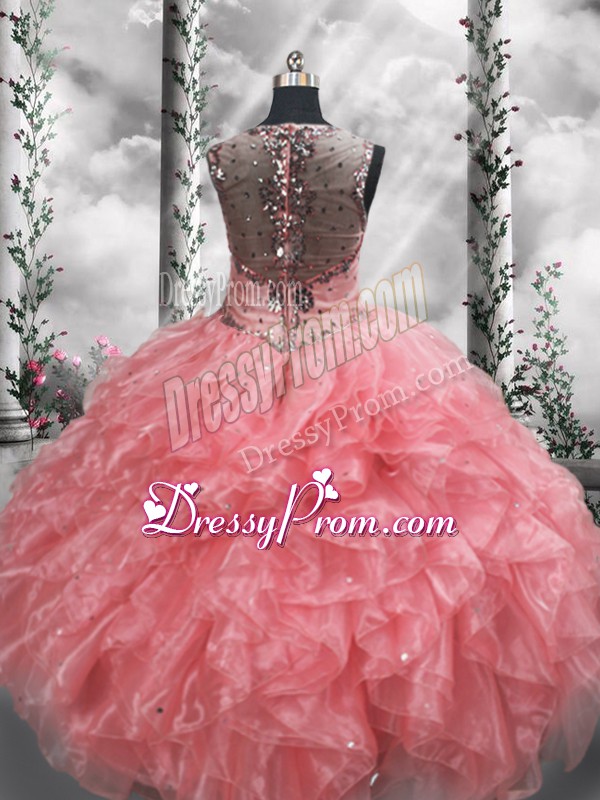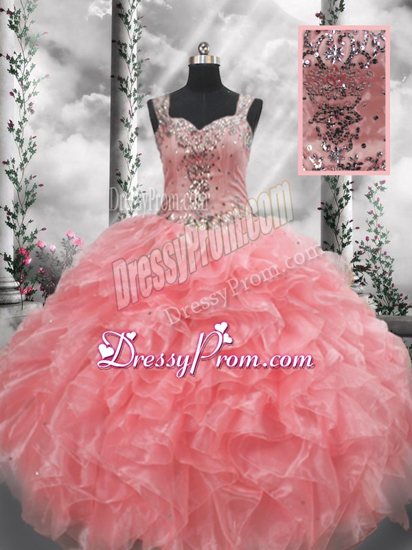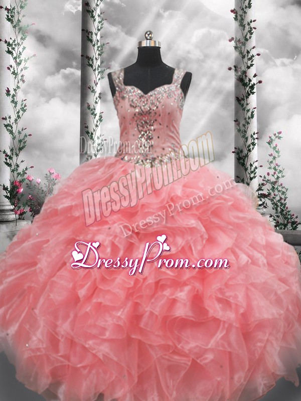 Affordable Straps Sleeveless Organza Ball Gown Prom Dress Beading and Ruffles Zipper