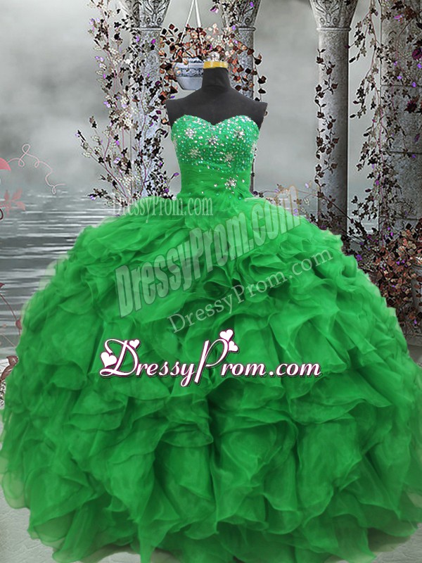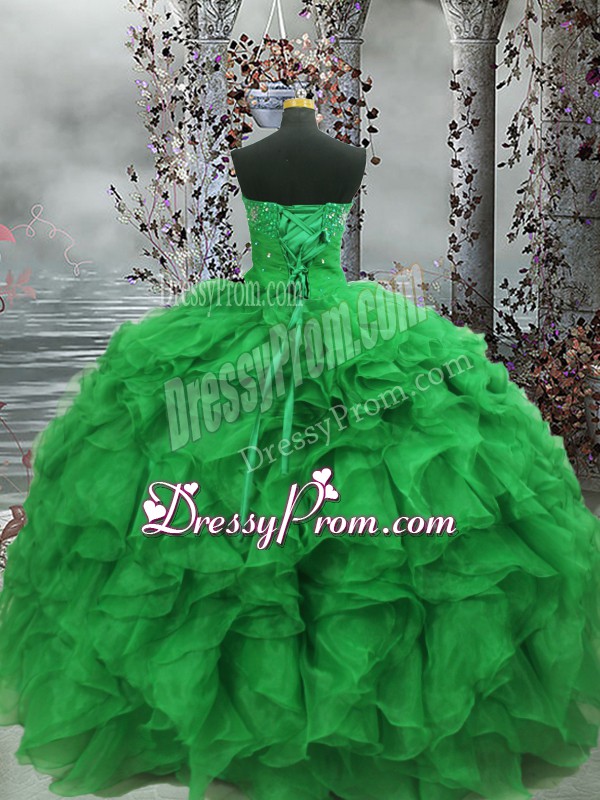 Popular Sleeveless Beading and Ruffles Lace Up Quinceanera Dress