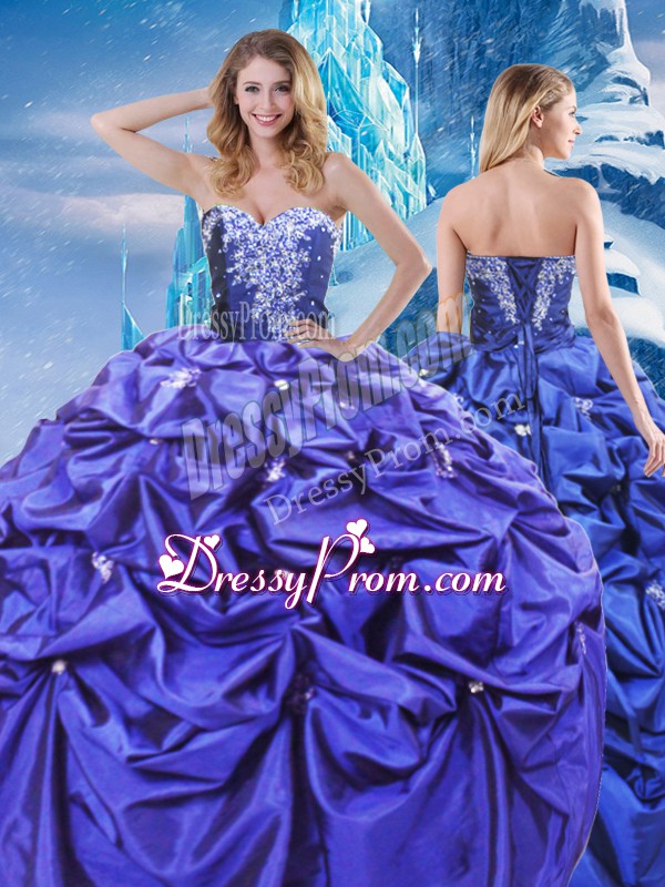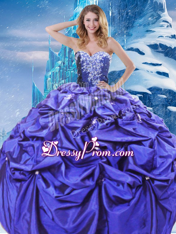 Sexy Purple Ball Gowns Taffeta Sweetheart Sleeveless Beading and Pick Ups Floor Length Lace Up Sweet 16 Dress
