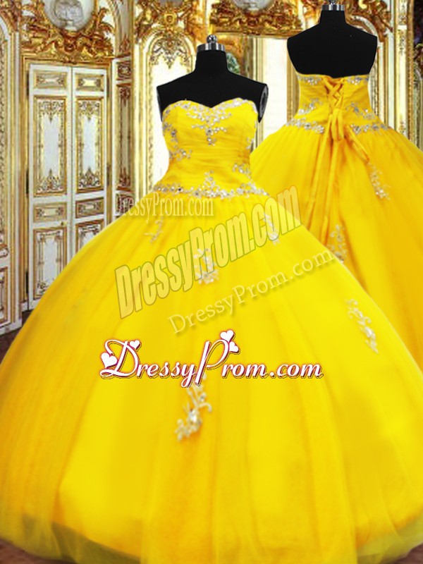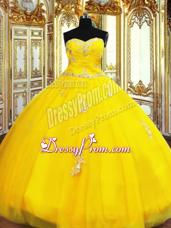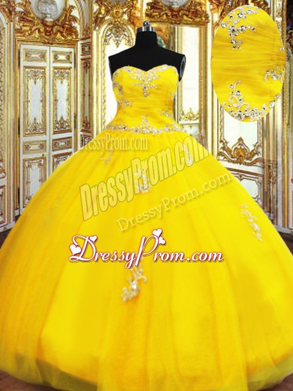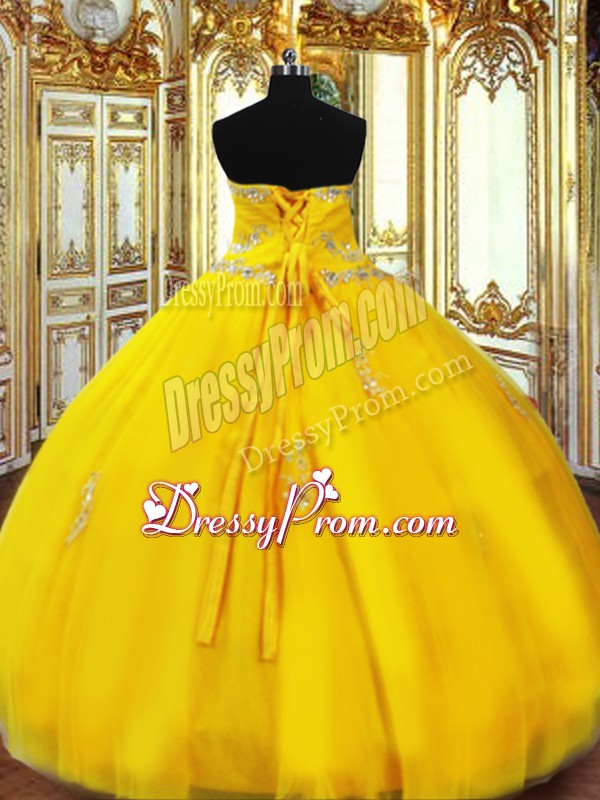 Gold Lace Up Sweet 16 Dresses Beading and Appliques Sleeveless Floor Length