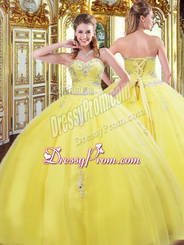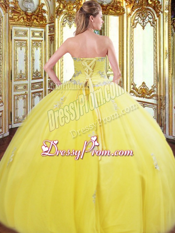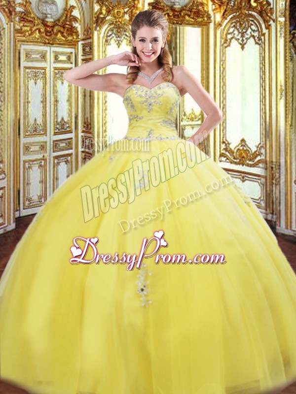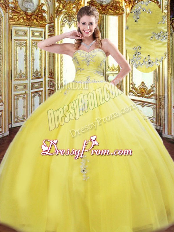 Classical Tulle Sleeveless Floor Length Vestidos de Quinceanera and Beading and Appliques