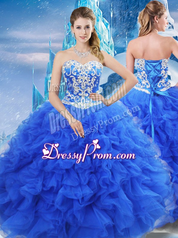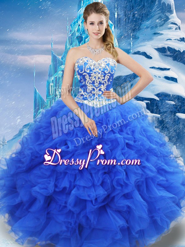 Exceptional Sweetheart Sleeveless Organza 15 Quinceanera Dress Beading and Ruffles Lace Up