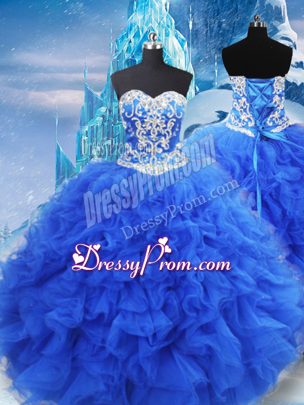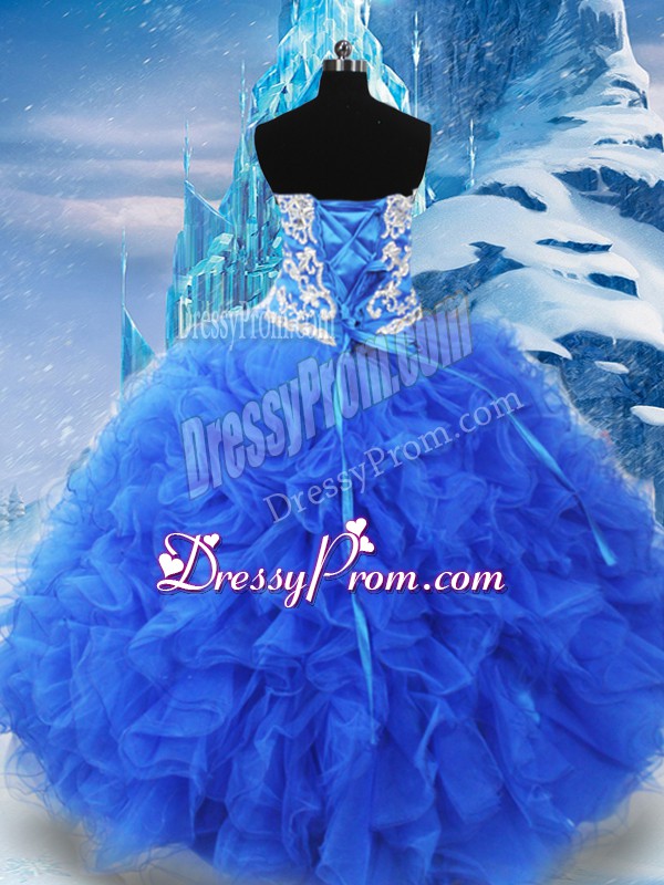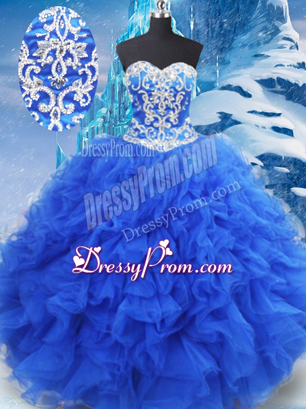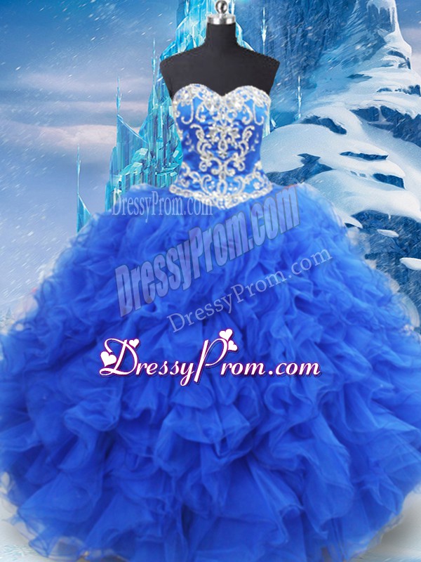Beading and Ruffles Sweet 16 Dresses Blue Lace Up Sleeveless Floor Length