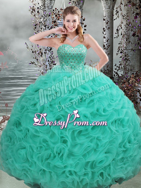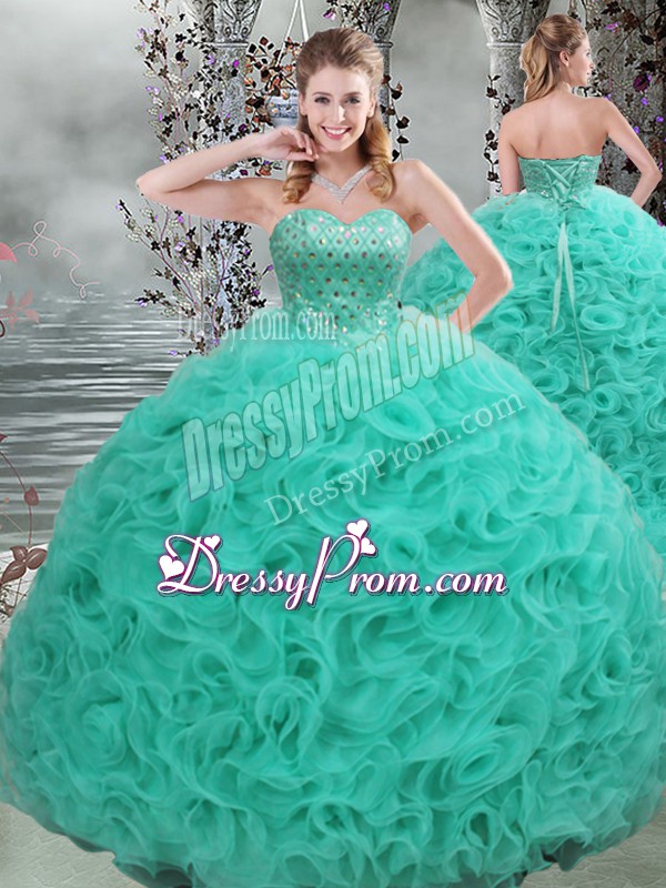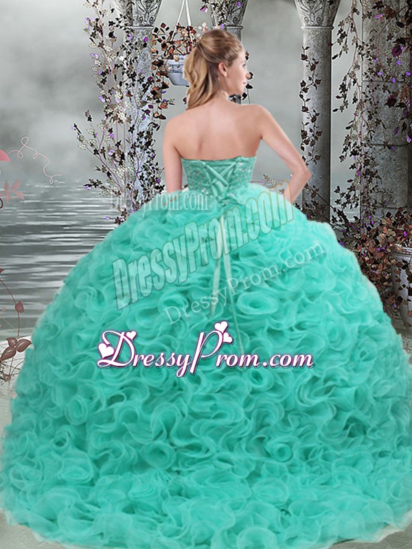 Fabric With Rolling Flowers Sleeveless Quinceanera Dress Brush Train and Beading