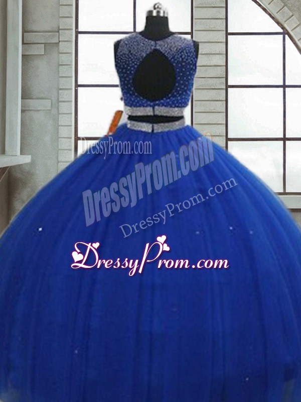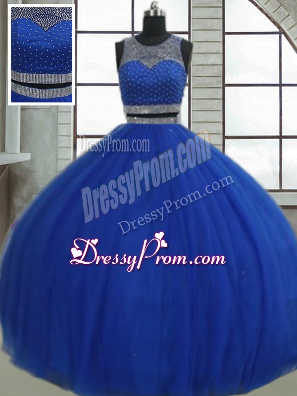 Neckline : ScoopShown Color : Royal BlueSilhouette : Ball GownsSleeve Length : sleevelessHemline : floor lengthBack Detail : Clasp handleFabric : TulleEmbellishment : Beading,SequinsOccasion : Military Ball,Sweet 16,QuinceaneraSeason : Spring,Summer,Fall,Winter