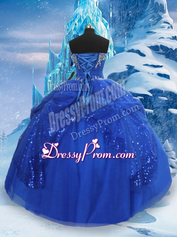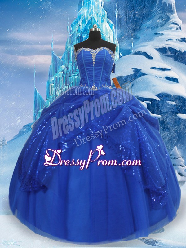 Neckline : SweetheartShown Color : Royal BlueSilhouette : Ball GownsSleeve Length : sleevelessHemline : floor lengthBack Detail : Lace upFabric : TulleEmbellishment : Beading,Pick UpsOccasion : Military Ball,Sweet 16,QuinceaneraSeason : Spring,Summer,Fall,Winter